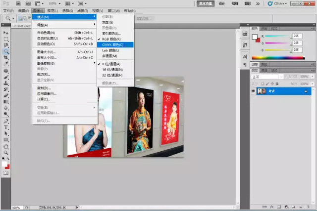 寫真可以使用CMKY模式,也可以使用RGB模式。注意在RGB中大紅的值用CMKY定義,即M=100Y=100。